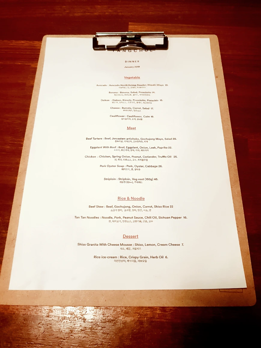 한편으론 나도 집에서 해봄직한 메뉴다 싶은 생각이 들 정도로, 구성이 복잡하지 않고 캐주얼하고 편안한 느낌을 주는 음식이어서, 식당의 '가정식' 테마에 적절하다고 생각했다.
