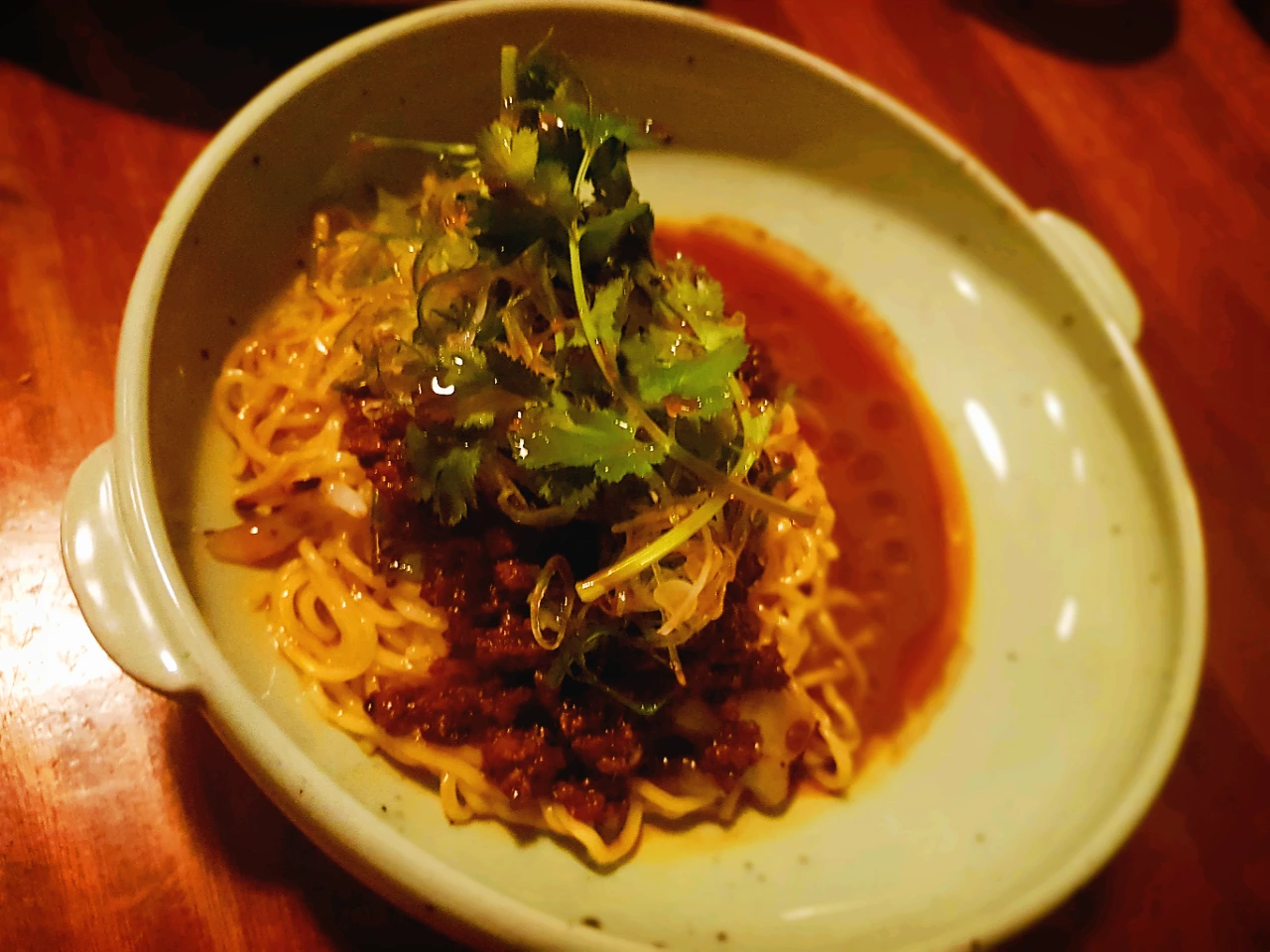 2. 탄탄면 : 면, 돼지고기, 땅콩소스, 고춧기름, 산초, 고수