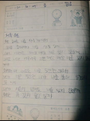 1991년 12월 27일 금요일 날씨:맑음 00국민학교 4학년 4반