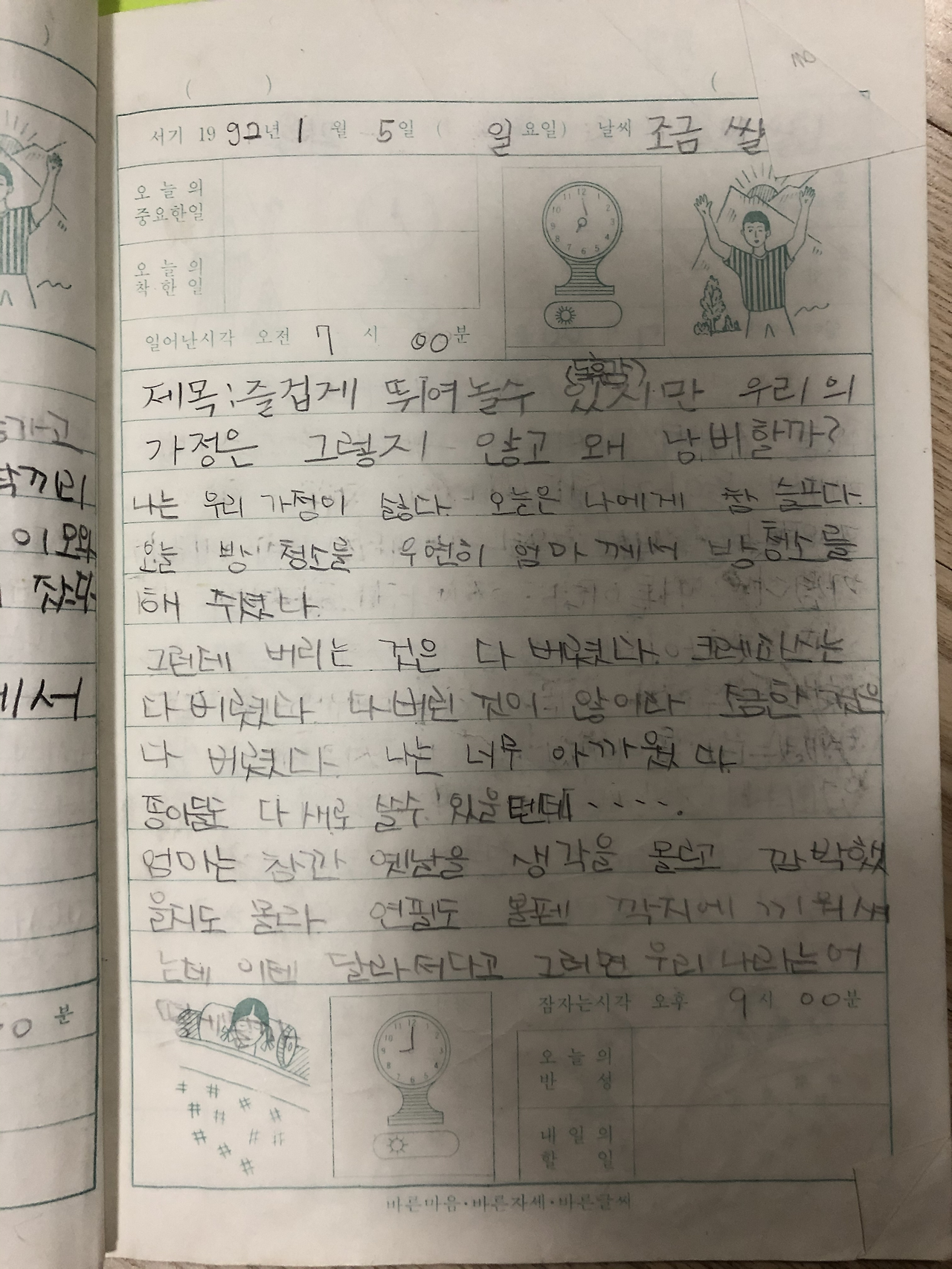 1992년 1월 5일 일요일 날씨: 조금 쌀쌀 4학년