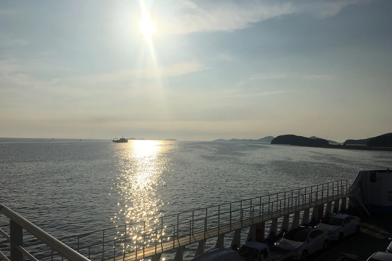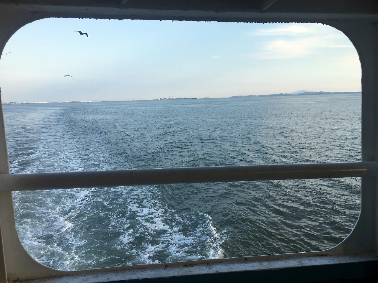 배 안에서 본 바다. 배 타려면 신분증이 반드시 필요했다. 누가 배에 탔는지 확실하게 확인하기 위함. 세월호 사건 이후 바뀐 일이라 했다.