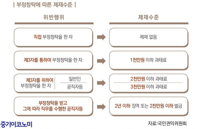 김영란법 대상자에 금품 건네면 최고 징역 3년