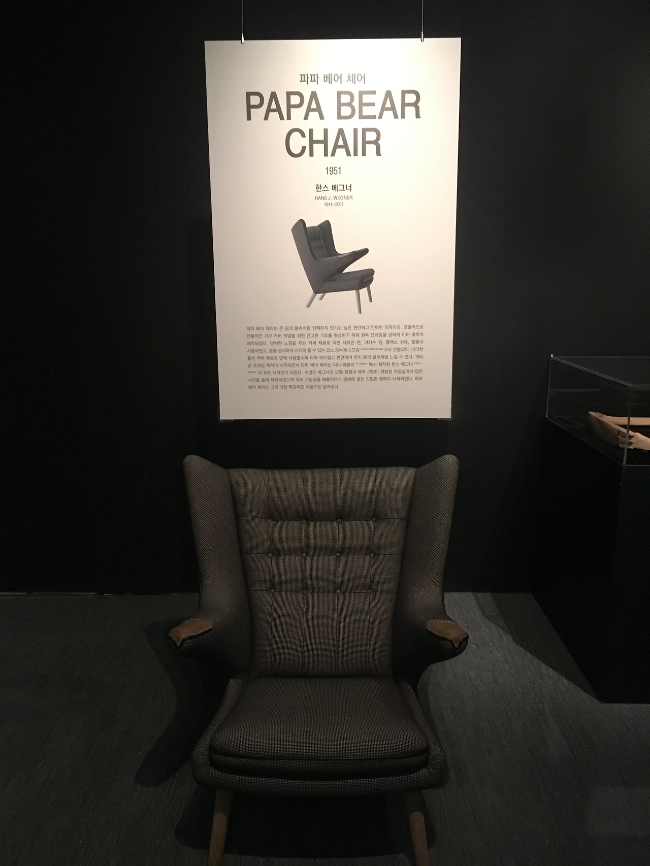 몇 년 전 대림미술관에서 했던 덴마크 가구 디자이너 핀 율 전시도 취재 갔었는데, 핀 율 의자도 몇 개 있었다.