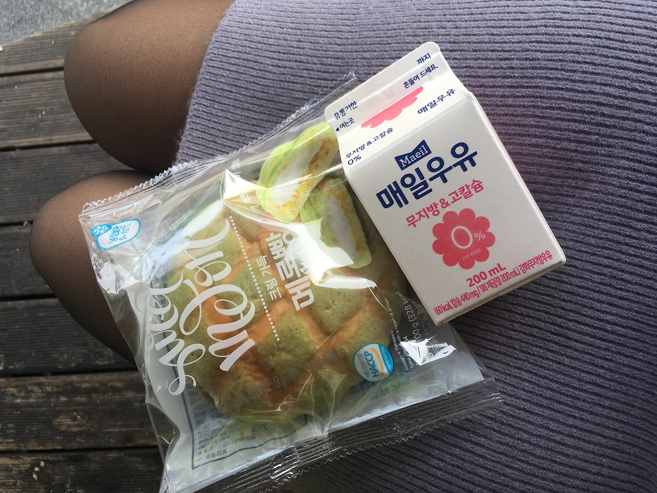전시 보고 식사는 편의점에서 3분 만에 샤샤샥.