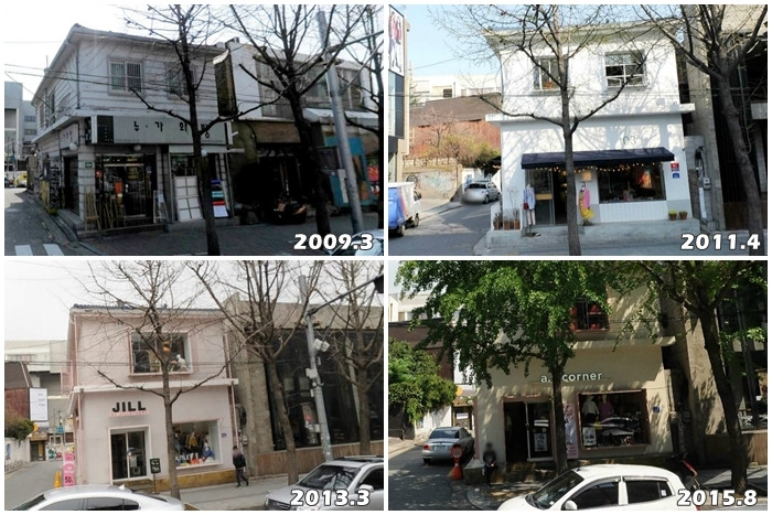 서울 마포구 서교동 361-21. 홍대 젠트리피케이션 현상을 여실히 보여주는 장소다. 2009년까지만 해도 이 자리는 홍대생들과 인근 거주 예술인들을 위한 화방이었다. 그러던 것이 2011년에는 보세 옷가게로, 2013년에는 중견 의류기업의 옷가게로, 2015년에는 대기업 계열 편집숍으로 바뀌었다. 불과 6년 사이에 벌어진 일이다.