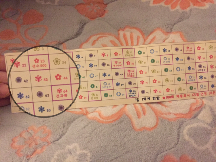 요가에 갈때마다 스탬프에 도장을 찍어준다. 10번 가면 생수를 주고, 33번 가면 견과류을 주고, 50번 가면 재등록시 1만원을 깎아주고.. 이렇게 100번까지 있다. 아주 훌륭한 동기부여 수단이다.