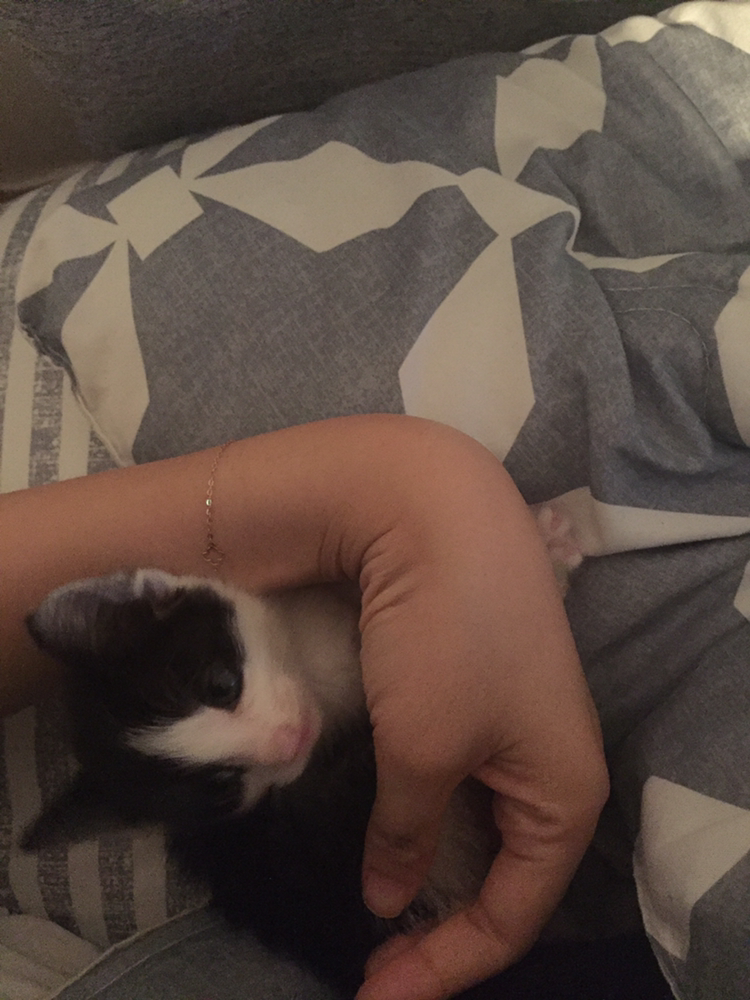 4. 동물병원에서 사온 우유를 줬는데 안 먹는다. 손에 찍어서 주니 조금씩 핥아먹는다. 기분이 아주 좋다. 몇시간이 지나니 얘도 마음이 놓였는지 더이상 떨지 않는다. 자꾸 와서 엉겨붙는다. 얘는 아무것도 없는 장소에는 절대 있지 않는다. 허벅지 옆이든, 배 위든, 이불 옆이든 어딘가에 몸을 기대고 있으려 한다. 지금 이걸 쓰는 도중에도 계속 노트북 위에 올라와서 놀아달라(?)고 한다. 계속 옆으로 떼어놓으니 이제 내 다리 옆에서 잠이 들었다.