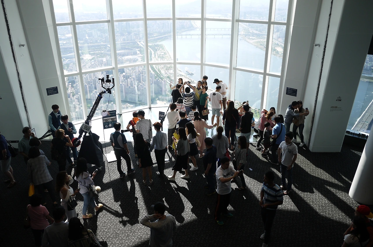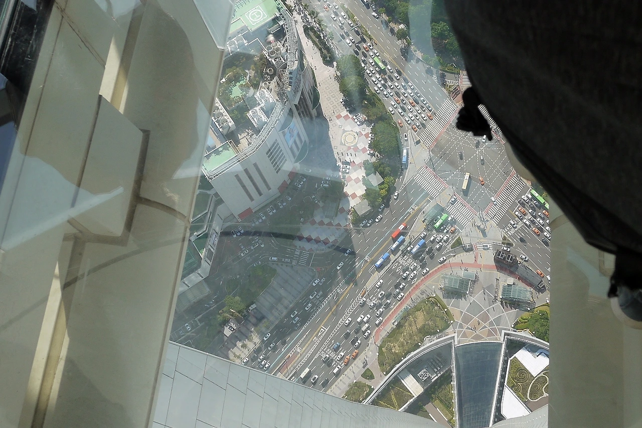 창밖으로 건물이 보이는 건 아무렇지 않은데 발밑으로 보이니 정말 무서웠다.