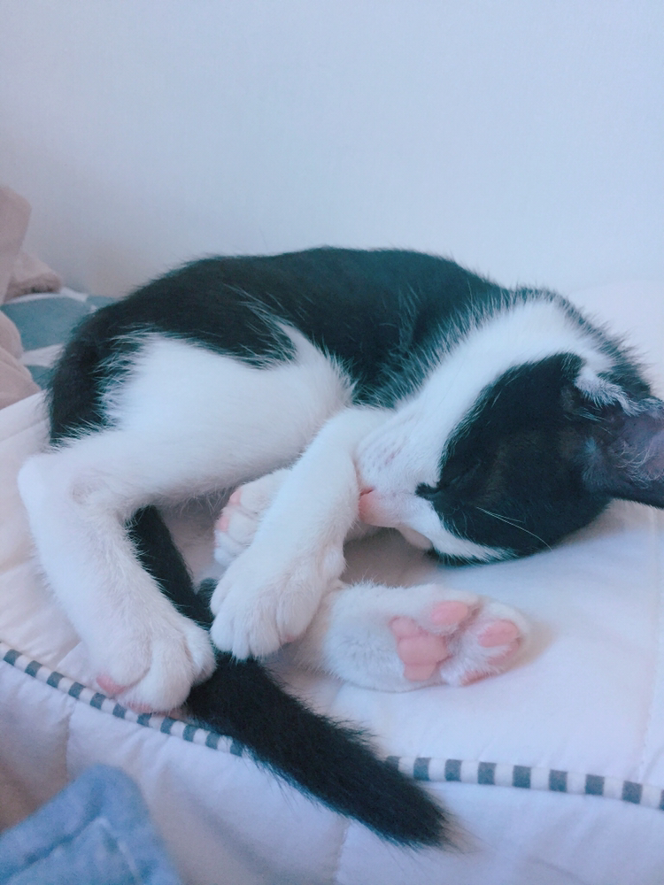 그래도 막상 고양이가 곤히 자고 있는 모습을 보면 깨워서 같이 놀고 싶다. 너무 오래 자면 살살 건드려가며 내가 되려 놀자고 조른다. 가끔 미안할 때도 있는데 그럴 때면 이 녀석이 간밤에 나를 괴롭히는 것을 되새기며 "이 정도야 뭐"하며 깨운다. 자고 있는 모습을 보면 천사다. 연신 쓰다듬고, 고소한 냄새가 나는 젤리를 만지며 뽀뽀도 한다.