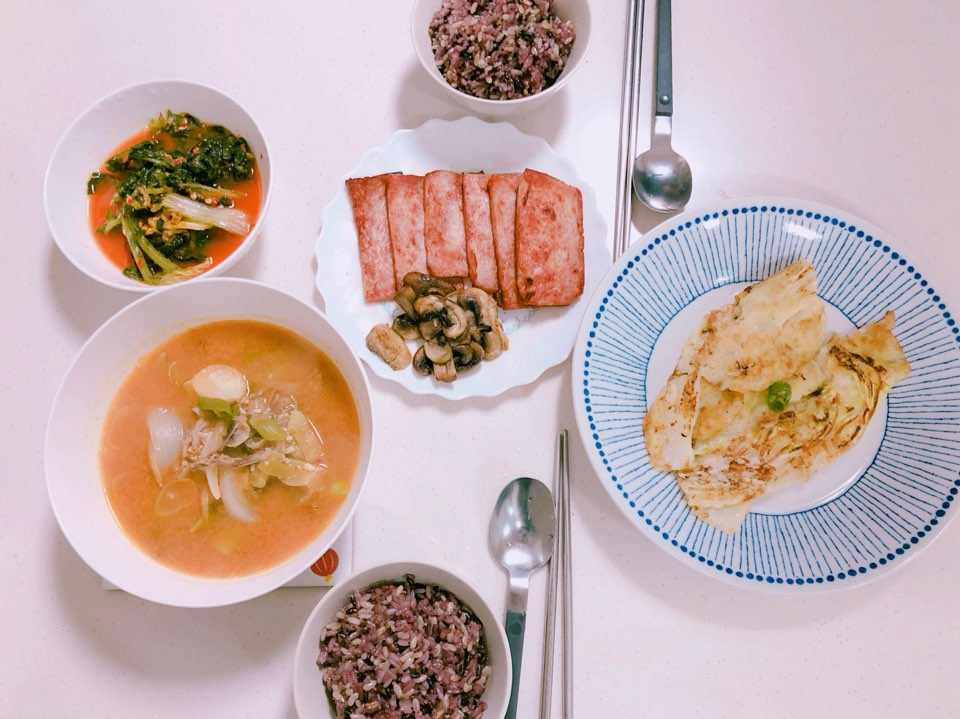 메뉴는 그때그때 다르다. 오늘 요리는 된장찌개, 스팸구이, 배추전이었다. 된장찌개는 굉장히 오랜만의 도전이다. 자취를 시작하고선 처음이다. 엄마가 청양고추가 들어간 만능 된장을 공수해줘 그걸로 끓였다. 끓는 물에 된장, 다진마늘(많이), 고춧가루, 양파, 파, 버섯, 청양고추를 넣고 팔팔 끓였다. 그런데 메인이라 할만한 녀석이 없어서 아쉽다. 두부도 없고. 냉동실을 뒤져보니 설날에 엄마가 준 장조림용 고기가 있다. 이 녀석을 넣어주니 아주 훌륭한 메인이 됐다. 씹는 맛도 있고, 고소하다.