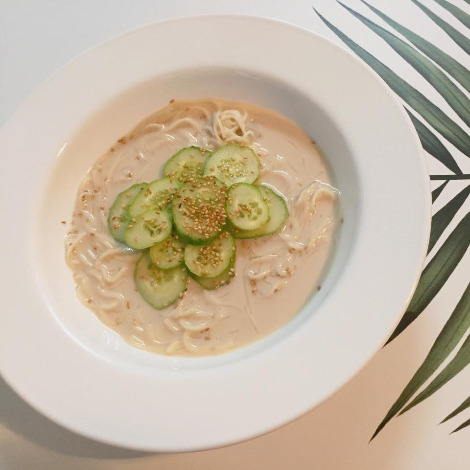 콩국수도 내가 사랑하는 요리 중 하나다. 소면에 콩국물을 붓고 오이를 송송송송 썰어 넣으면 끝이다. 깨소금을 뿌리면 2배 맛있어 보이는 효과. 우리 엄만 콩국수 위에 방울토마토 반쪽을 올려주곤 했다. 하얀 도화지에 빨간 물감을 칠한 듯 색도 예쁘고, 별미이기도 하다.