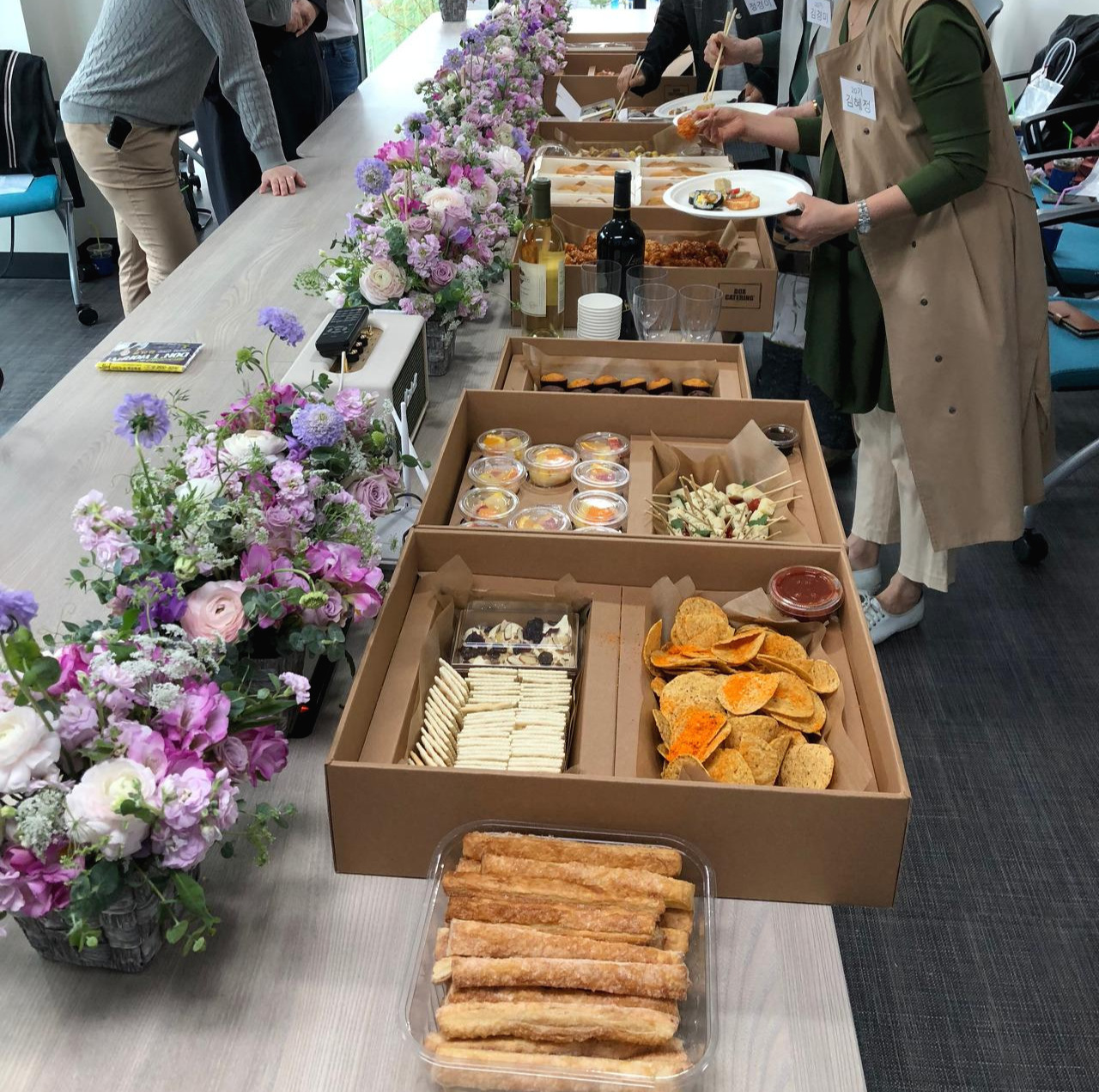꽃꽂이를 마치고 식사시간. 선배들이 준비해온 와인에 케이터링까지. 그야말로 호사를 누렸다.
