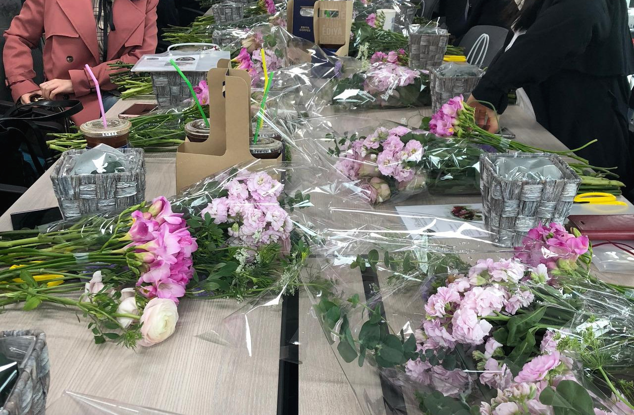 빠른 진행을 위해 미리 어느 정도 손질이 된 꽃을 준비해오셨다. 꽃들 덕분에 사무실에 들어서자마자 꽃향기가 가득했다.