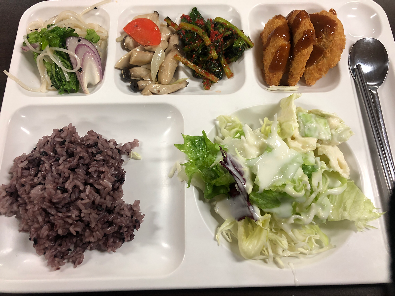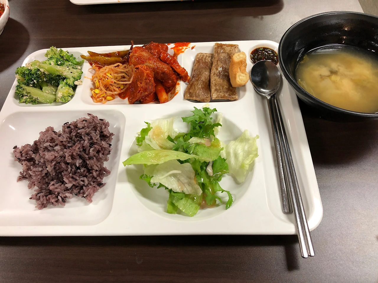구내식당은 아닌데 바로 옆 건물에 제휴된 급식업체가 있다. 정가가 6500원인데 3500원은 회사 지원, 3000원은 본인부담이다. 큰 기대 않았는데 생각보다 아주 맛있다!!!! 무엇보다 좋은 건, 구내식당답지 않게 자극적인 맛이다. 첫 직장에도 구내식당이 있었는데 몸에 좋은 음식을 제공하려다 보니 너무 싱거웠다. 그래서 몇 번 먹다 질려 바깥으로 나돌기 시작했다. 여긴 그렇지 않다. 짜고 맵고.. 결론적으로 말하면 맛있다. 김치를 포함해 반찬 8종에 국까지 하면 9종(국은 거의 안 먹지만.)이다. 요구르트나 작은 빵 같은 것도 주고. 3천원에 누릴 수 있는 호화로운 식사다. 이사 온 이후로 외식의 필요성을 전혀 느끼지 못하고 있다.