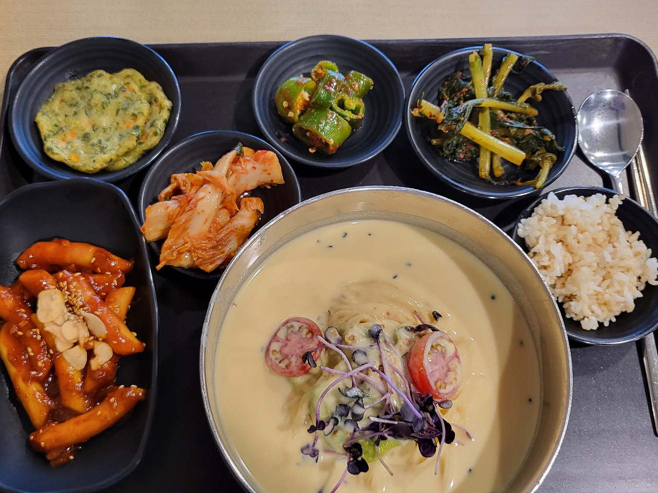 고객사 구내식당 밥이 참 맛있다. 아보카도 콩국수에 떡볶이, 현미밥, 하이라이트는 고추무침! 너무 좋다 ㅠㅠ