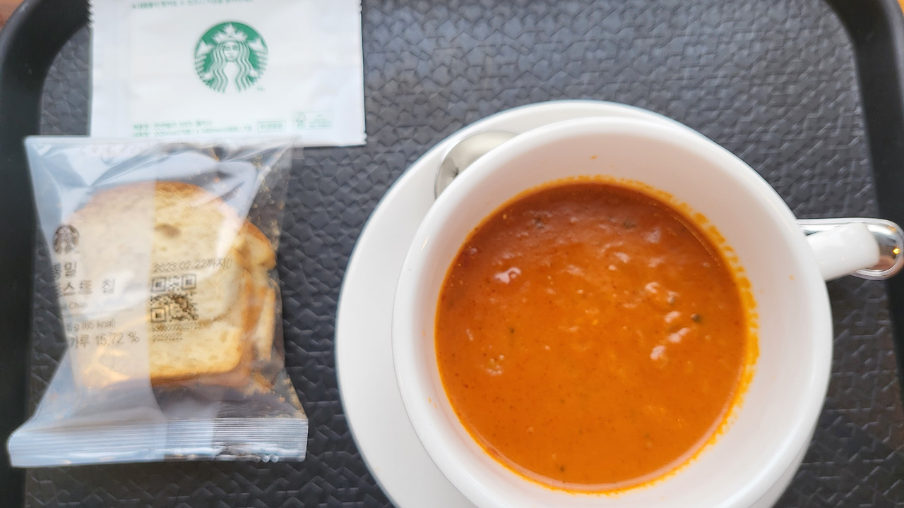 오늘 아침은 단호박스프. 스타벅스 스프 3종 마스터 완료!