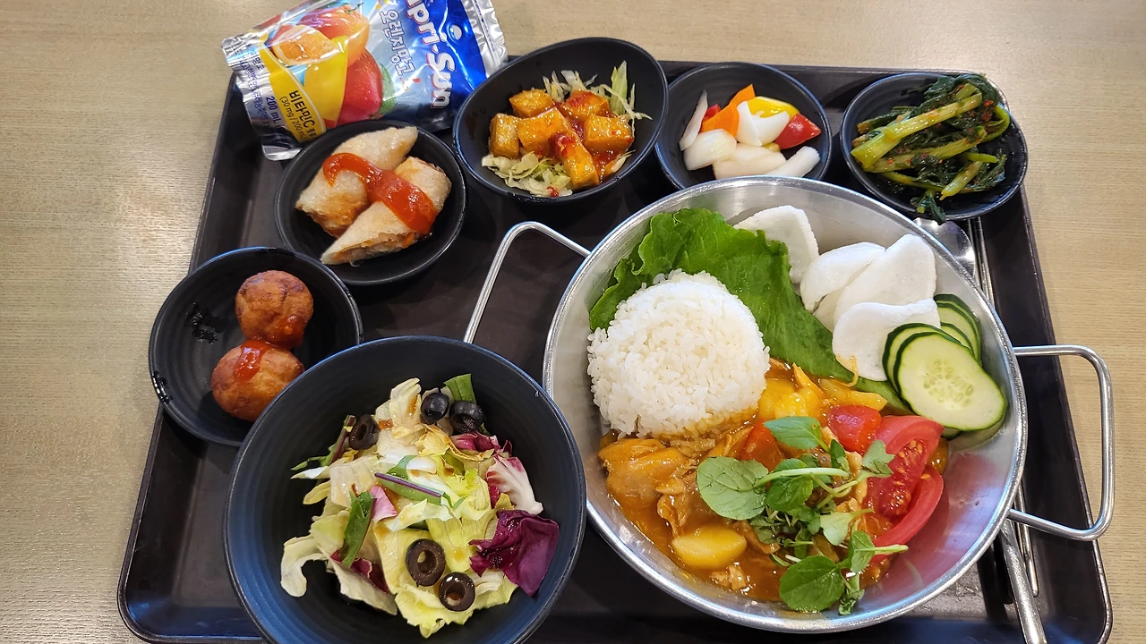 2일차 되니 아주 조금 적응. 오전 정신없이 일하다 보니 어느덧 점심. 구내식당에서 먹는다. 푸짐하군!