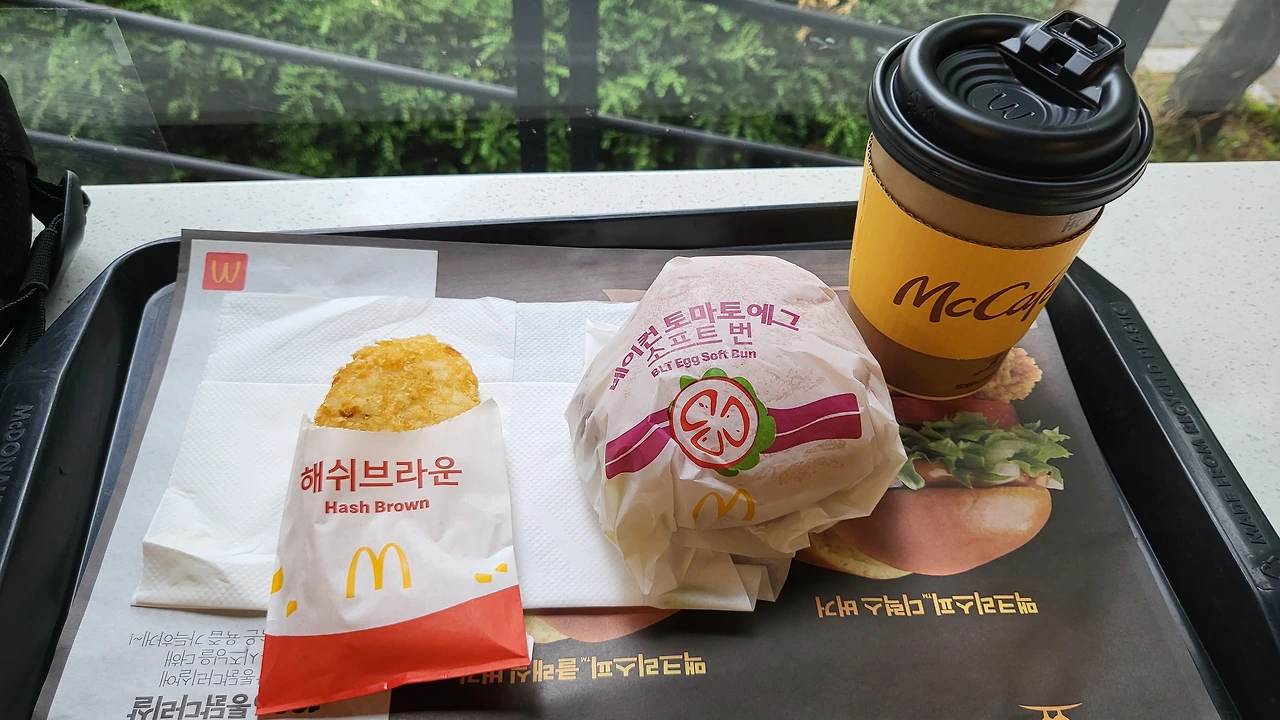 도착했으니 아침 먹는다. 소프트 번 맛있네. 맥모닝은 날 실망시키지 않지.
