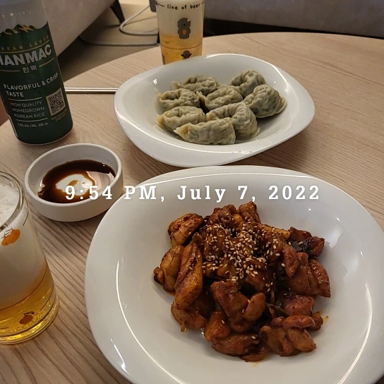 오래간만에 일찍 퇴근해서 남편이 야식을 차려주었다. 닭갈비랑 만두, 맥주.
