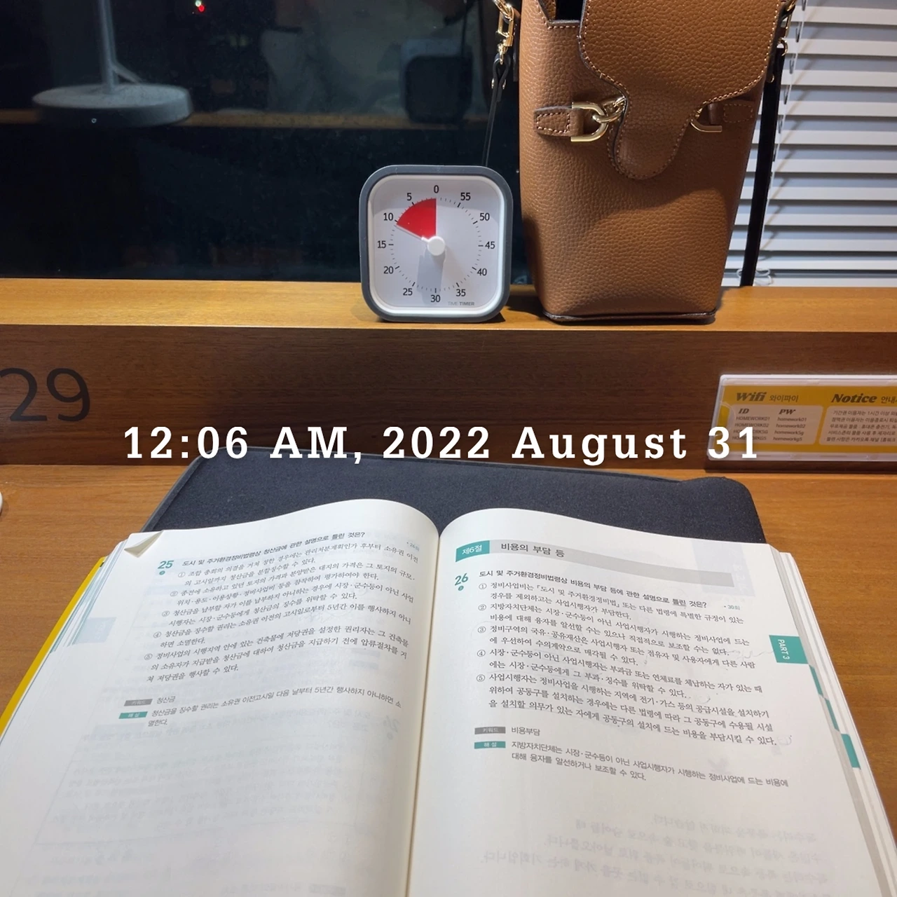 매일 스터디카페에 가고 있다. 퇴근하고 저녁 먹고 밤 12시까지 공부, 요즘 같은 연휴 때는 아침에 가서 잠자기 전까지 공부를 한다. 한 이틀 정도는 1시가 다 되어 집에 온 것 같다. 직장인이 무슨 공부인고 하니, 어른들의 수능이라는 공인중개사 시험이다.