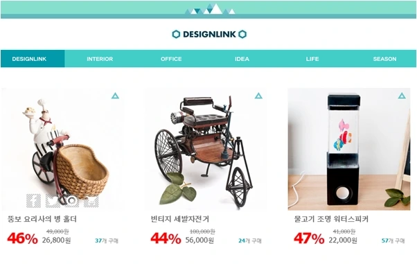 저렴하게 제품을 들여온 이 회사는 아이디어 상품과 인테리어 소품을 정가 대비 40% 이상 저렴하게 판다. 각각의 구매 페이지에는 정가 대비 할인율이 얼마인지를 기재해뒀다. 일부 온라인 쇼핑몰에서는 정가를 높게 잡아 할인율이 커 보이게 눈속임을 하는 경우도 있다. 디자인링크도 그런 것이 아니냐고 물었다. 장 대표는 손사래를 친다.