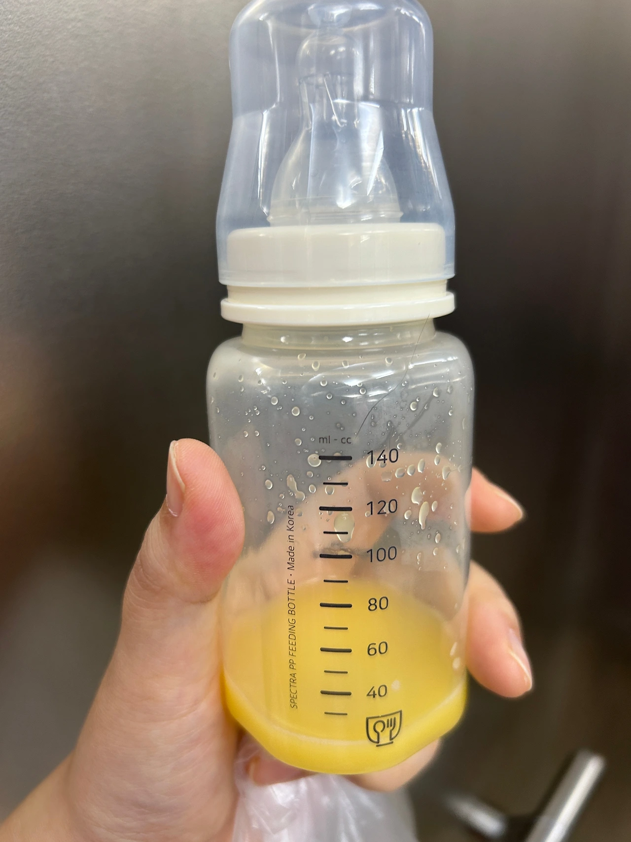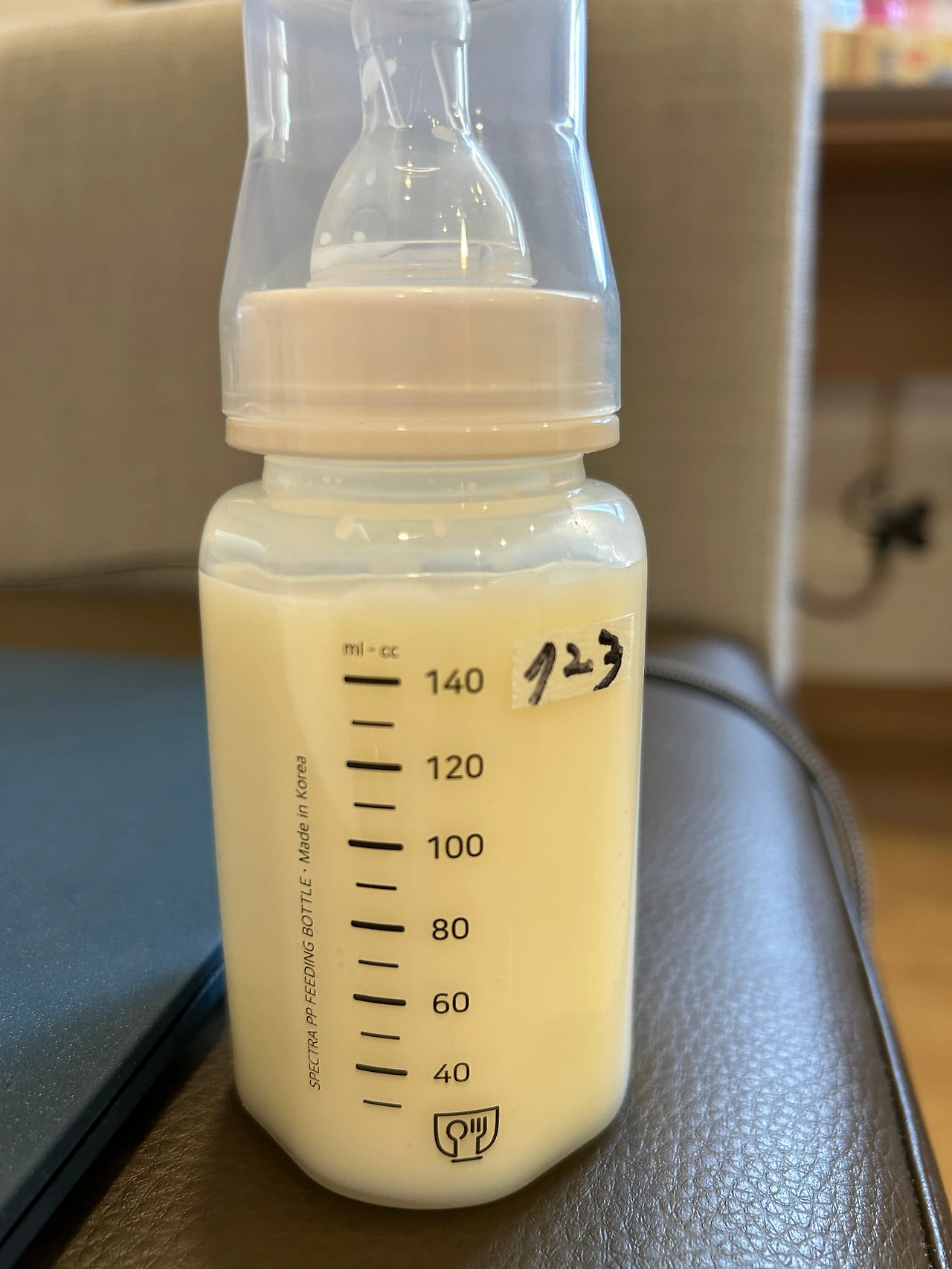불행인지 다행인지 나는 젖양이 너무 많았다. 처음 유축했을 때는 30분간 해도 20ml밖에 나오지 않았지만 점차 젖의 양이 늘어나더니 조리원에서 퇴소할 때쯤(출산 후 2주)에는 젖병을 가득 채워 160ml까지 나오기도 했다. 이때 아기는 한 번에 80ml 정도밖에 먹지 않기 때문에 수유양은 충분했고, 너무 많이 젖을 짜내면 좋지 않다고 해서 30분을 채우지 않고 수유를 멈추기도 했다.