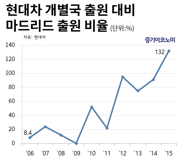마드리드 출원제도를 활용하면 대리인 문제를 해결할 수 있다. 한국 특허청에 상표 출원서를 내면서 원하는 국가를 지정하면 해당 국가에서 상표 등록을 받을 수 있는 제도다. 현대차는 해외에 1만7400건의 상표권을 보유하고 있는데, 이중 5900건을 마드리드 출원제도로 등록했다. 2006년만 해도 이 회사의 마드리드 출원 이용률은 개별국 출원 대비 8.4%였으나 2015년에는 132%까지 늘었다. 국가별 출원보다 마드리드 출원 숫자가 많다는 의미다.