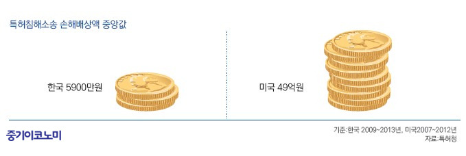 박 국장은 “특허를 무단으로 쓴 기업도 기껏해야 5900만원만 물어주면 된다. 돈 주고 쓰는 것보다 일단 쓰고 걸리면 그때 가서 물어주는 게 싸게 먹힌다는 뜻”이라며 “대한민국에서 벤처기업이 성공하기 어려운 것도 그래서다. 기술 침해가 쉬우니 기술이 제대로 된 가치를 인정받지 못한다. 그러니 은행에서도 특허만 믿고 대출을 해줄 수 없다. 악순환의 연속”이라고 말했다.