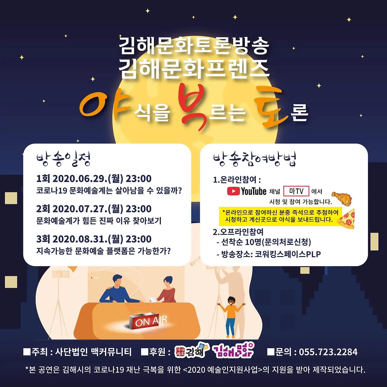 지난 월요일 밤 6월의 끝을 잡고 첫번째 김해문화프렌즈라는 제목으로 실시간온라인 방송을 진행했습니다