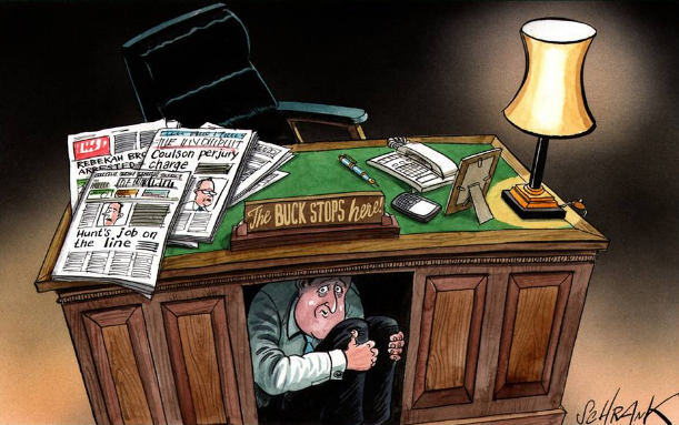 모든 책임은 내게서 멈춘다. "The Buck Stops Here"