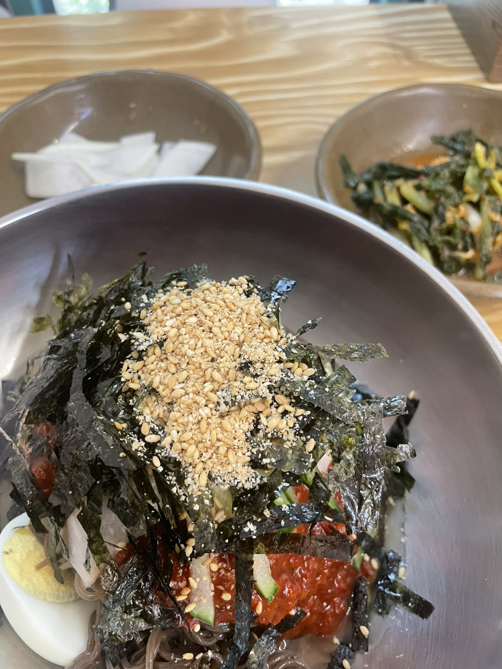 아이들은 학교에 갔고, 틀린듯한 시험문제도 이제 많이 기억나지 않고, 아무런 스케줄도 없는 그런 여유롭고 기분좋은 오전 말이다. 하하하. 누굴 만나지도 않을테지만 이쁘게 샤워 챡 하고, 단정하게 차려입고 나와서는 검색해놓은 카페로 운전대를 잡고 가다가, 어맛, 카페 바로 옆에 내가 좋아하는 막국수집이 있네. 그렇다면... 먹어야지. 아암. 충동적으로 메밀막국수 집에 들어갔다. 아니, 충동적이지 않을수도 있다. 나는 막국수를 아주 오래전부터 먹고 싶었으니깐.. 그렇다면 철저히 계획적인것일수도..아암.