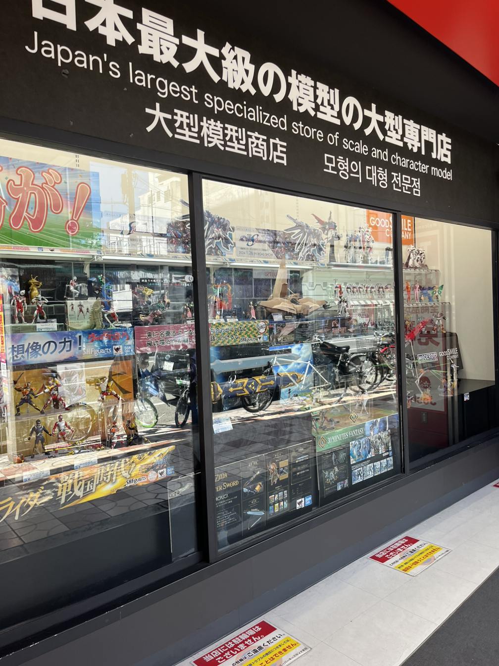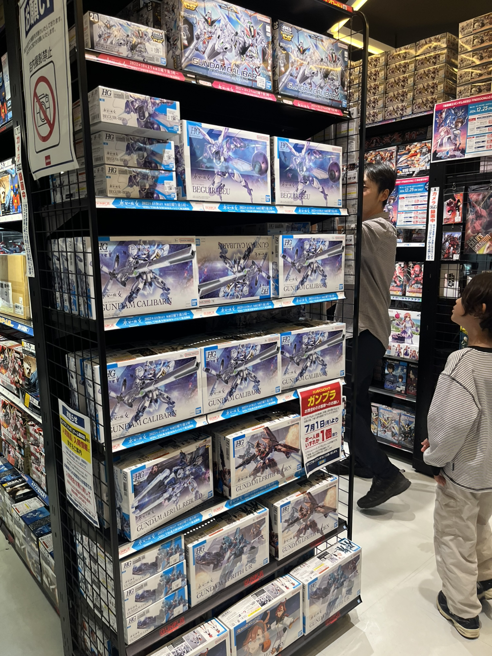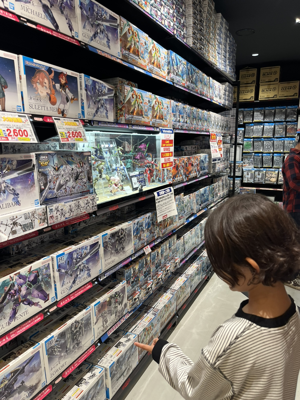 덴덴타운 쪽으로 남편을 따라 걸어갔다. 걷다 보면 건물외벽 곳곳에 애니메이션 포스터들이 크게 붙어 있었다. 덴덴타운이 여기라고 이야기하는 것처럼 말이다. 처음에 Joshin Super Kids Land 본점에 갔다. 규모가 큰 만큼 프라모델 종류가 정말 다양했다. 건프라 같은 경우 제주에서 봤던 것들도 있었지만 못 보던 것들이 훨씬 많아서 아이가 정신없이 구경하며 즐거워했다. 이곳에서는 인당 구매 가능한 제품은 한 개로 제한되어 있었고 55,000엔 이상 사면 10% 할인해 줬다. 아이는 고심 끝에 네 개 중에서 두 개를 골랐지만 계산할 때 55,000엔 이상 사면 할인해 준다는 안내를 듣고 하나 더 추가해 세 개를 샀다.