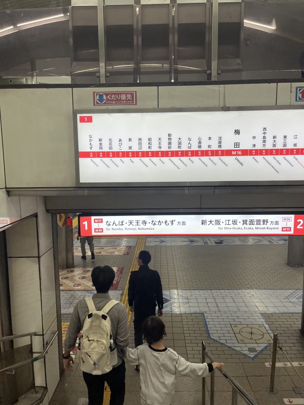 우메다역에서 미도스지 선을 타고 난바역으로 갔다. 일본은 지하철 노선마다 역명이 다르기 때문에 잘 보고 가야 한다. 그래도 어제 교토에 갈 때 탔던 JR선보다는 난이도가 훨씬 낮았다. 매표소 터치스크린에서 역명 검색을 하는 게 있었는데 Nan으로 치니 나오지 않았다. Na 검색해 보니 난바역은 영어로 Namba였다. 난바역까지 네 정류장 가면 되는데 호텔에서 약 30분(도보 포함) 걸렸다. 지하철 출구로 나오자 난바 마루이가 보였다. 큰 쇼핑몰이라는데 패션에 크게 관심이 없기에 패스했다.