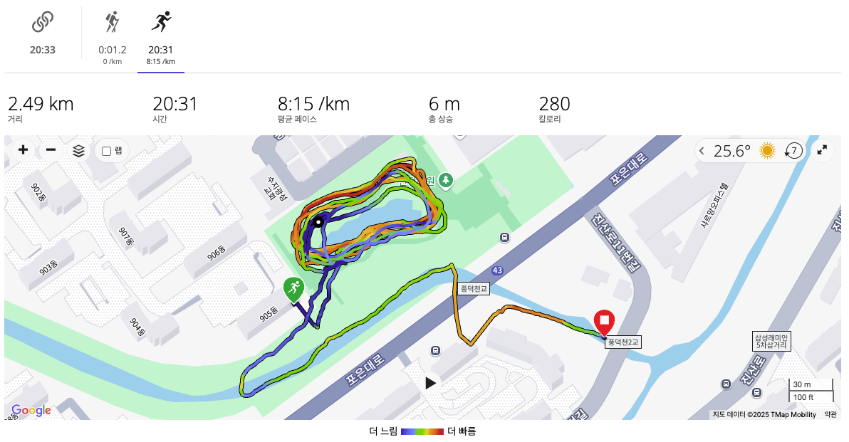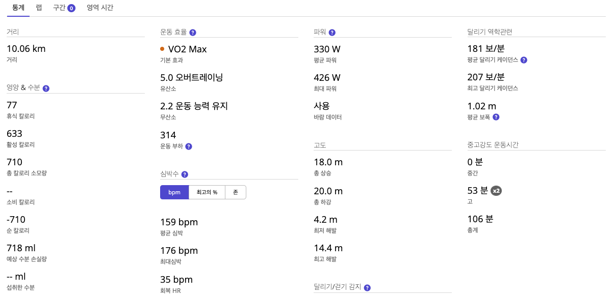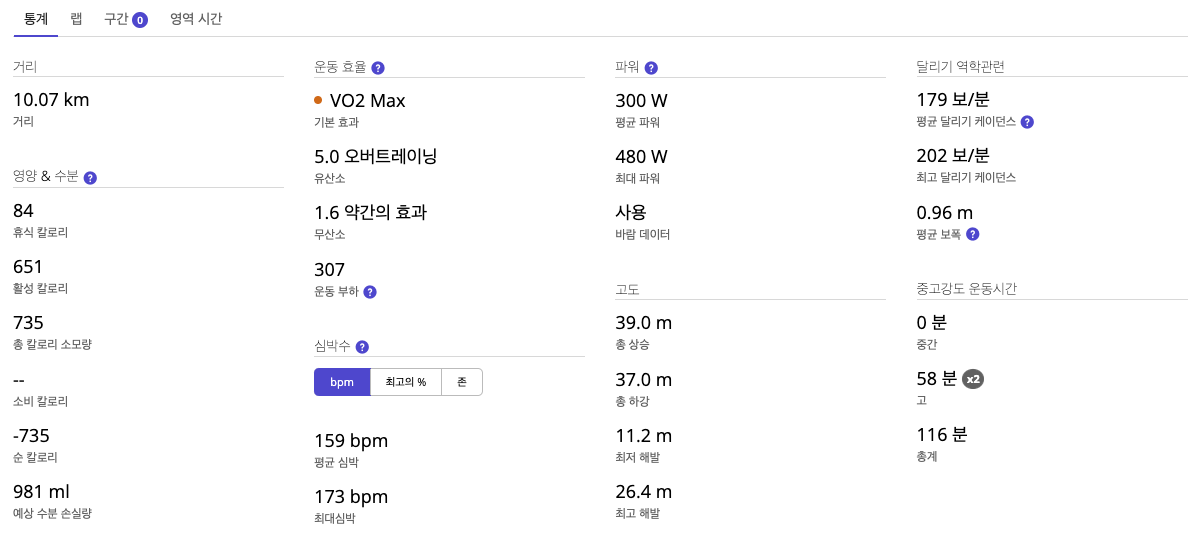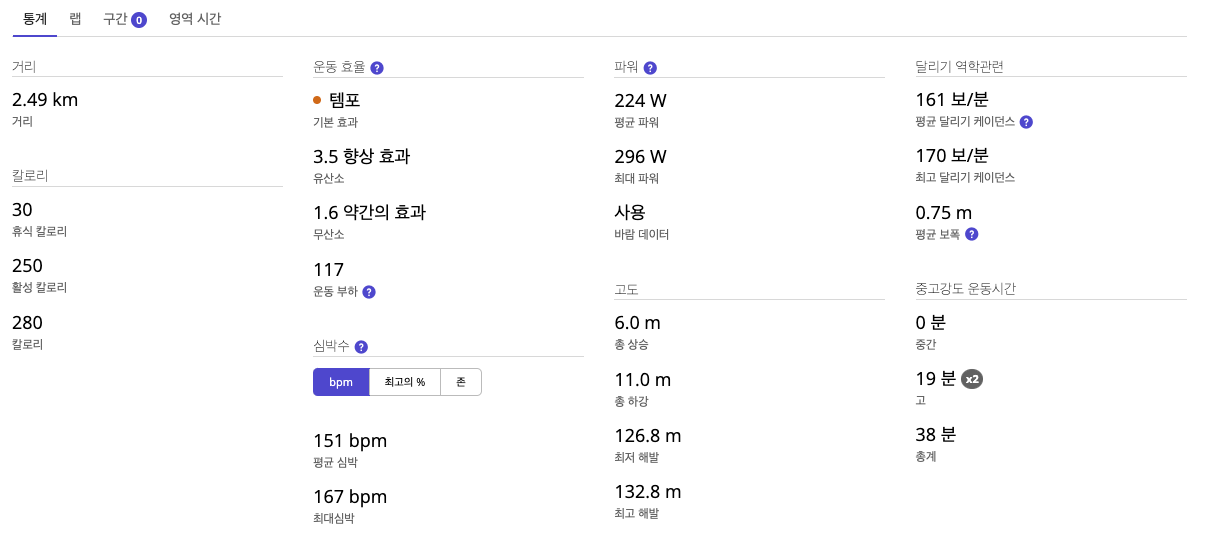 이 당시만 해도, 막 열심히 뛰고 싶어 하지 않던 때였고, 날도 더워서 무척 설렁설렁 뛰었다. 그럼에도 평균 심박이 151 bpm이었고, 케이던스는 161보/분이었다.