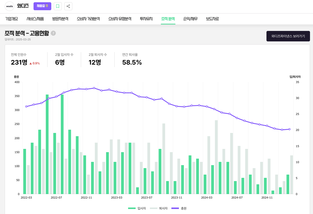 혁신의숲(https://www.innoforest.co.kr) 데이터를 월별로 들여다 보아도, 파격적인 인적 쇄신은 없었던 것 같다.