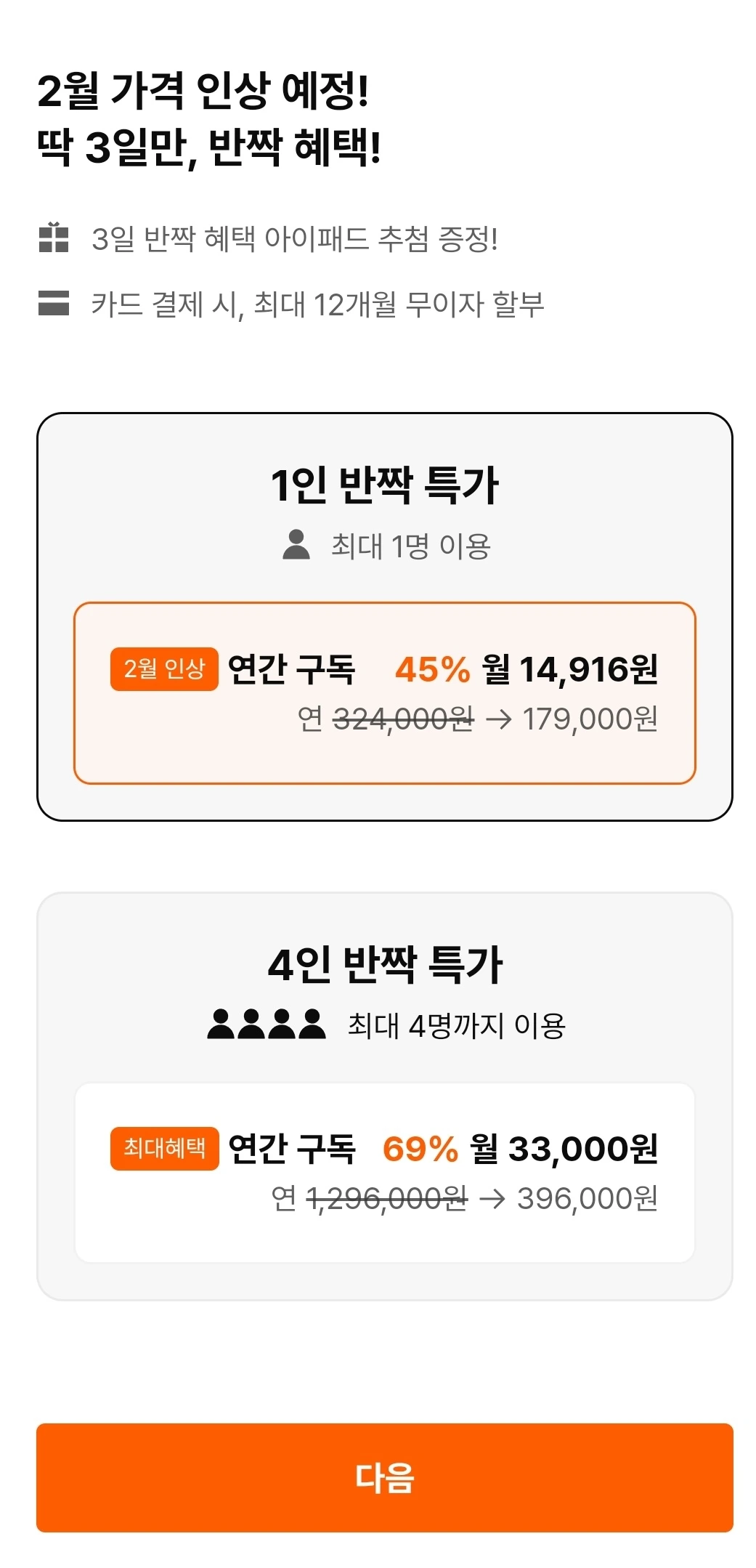 연초에도 이런 호객 문자가 많이 왔었는데, 그 당시에는 179천 원이었는데, 더 저렴하게 구독할 수 있게 제안을 해주었다. 아래는 2025년 1월에 받았던 내용이다.