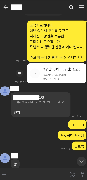 나는 아이의 ‘동기(motivation)’가 가장 중요하다고 생각하기 때문에 그 말을 인정했다. 대신 둘째 딸은 산행 가겠다고 나서서 우리 가족 중 3명이 6차 산행에 참가 신청을 했다. 그런데 어느 날 올라온 교육대장님의 6차 산행에 대한 소개가 눈에 들어왔다.