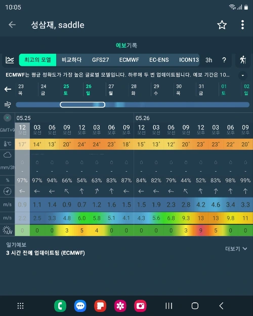 그리고 그날 저녁 식사 시간에 나는 첫째 딸에게 버즈 케이스도 받았는데 이번 산행에 동참해야 하지 않겠냐고 했고, 동생을 끌어들여서 언니가 함께하지 못해서 너무 아쉽다고 하면서 군불을 때우기 시작했다. 그래도 완강하게 버텨서 이번 산행만큼은 아빠가 네가 원하는 것을 하나 사주겠다고 했다. 기존에는 한 번도 산행의 보상을 준 적이 없는데 프리미엄 코스라는 말에 과감히 질렀다. 그런데도 넘어올 듯, 올 듯 안 넘어온다. 이제는 더워서 싫다고 한다. 그래서 날씨 예보를 보내줬다.