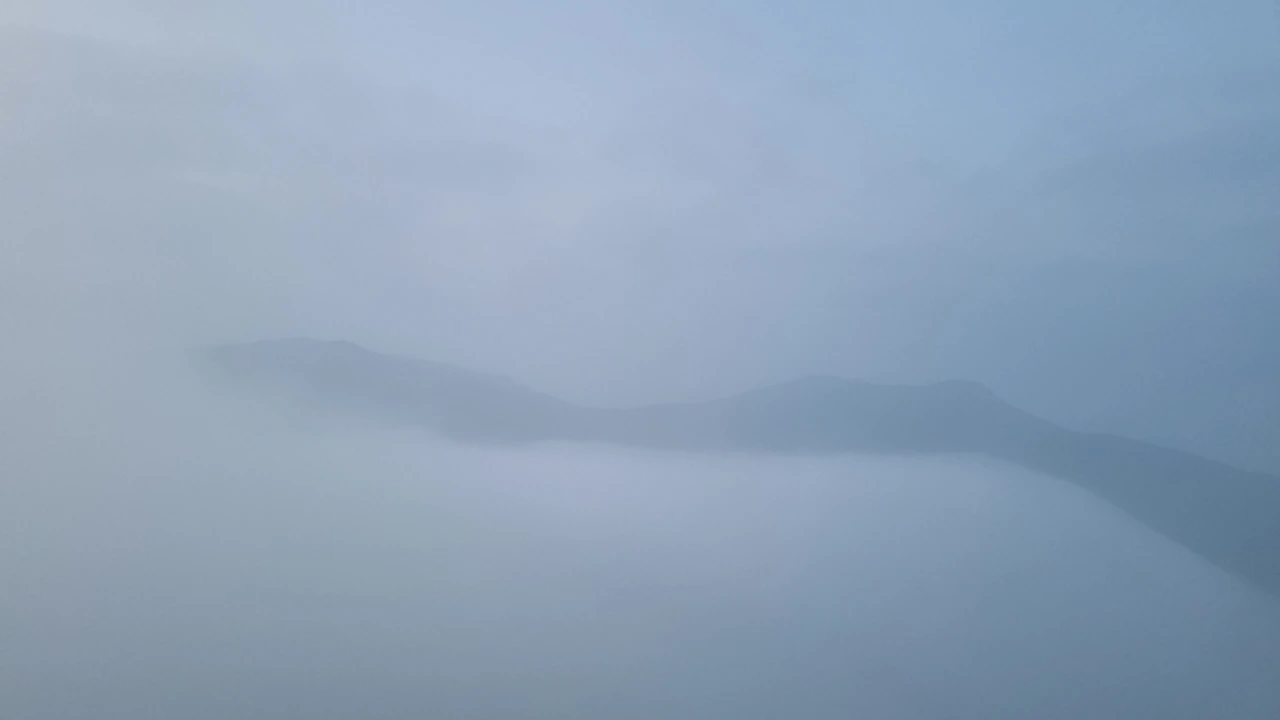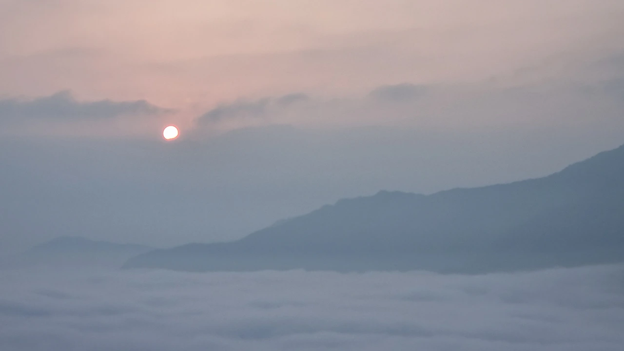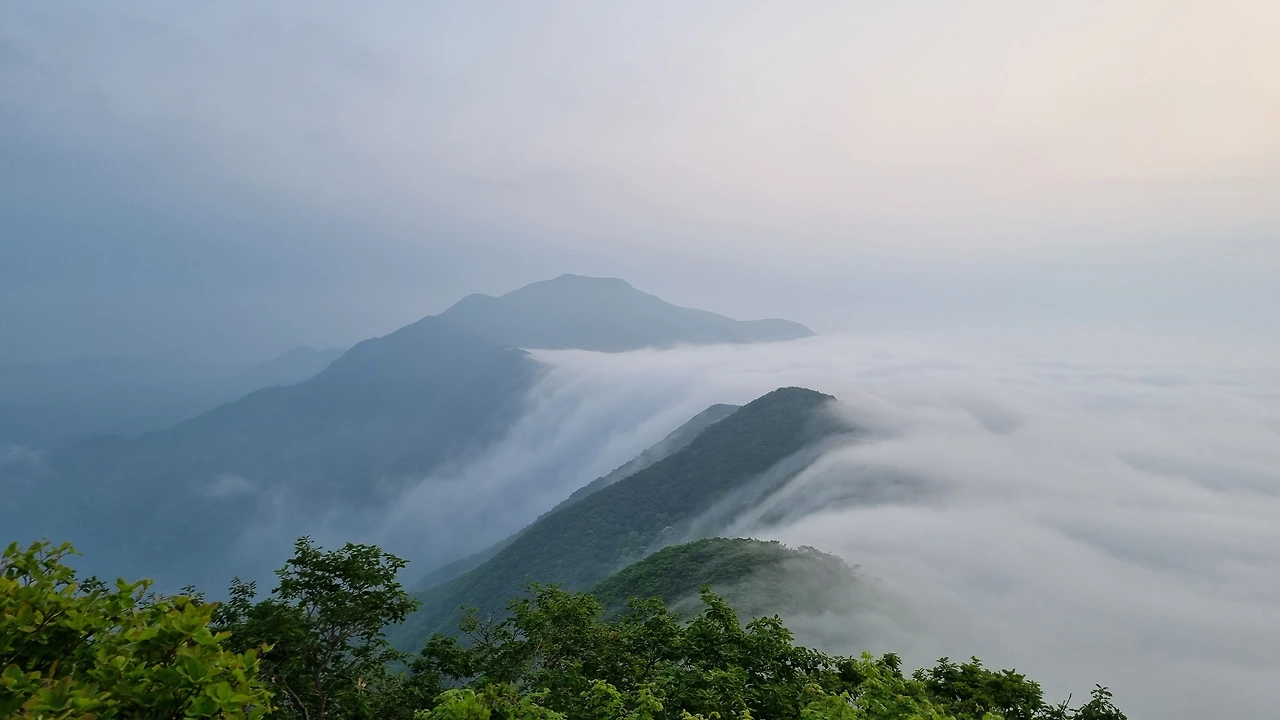 구름의 바다가 산을 만나 파도가 치고 그 산을 넘어가는 모습 같았다.