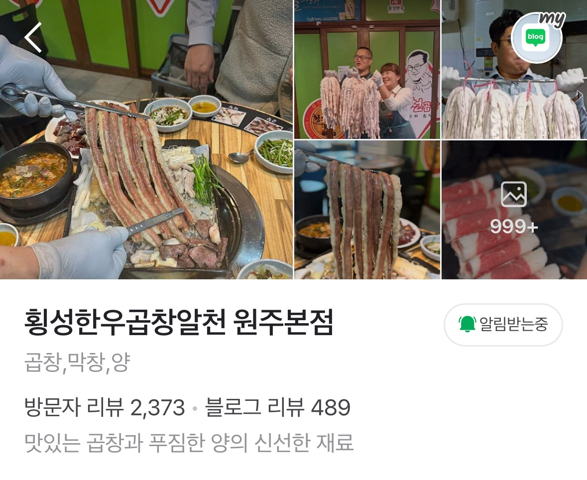 횡성한우곱창 전문점 ‘알천’을 운영하고 있습니다.