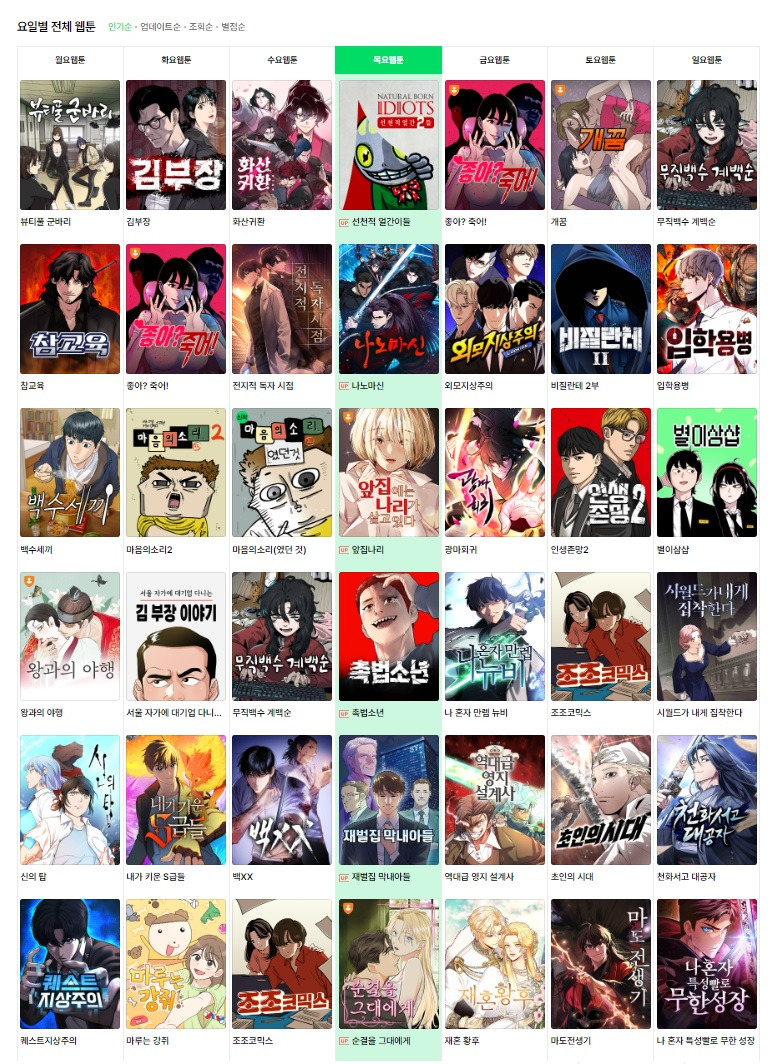웹툰이 가진 장점은 많습니다. 적당히 본다는 전제 하에 많은 영감을 주기 때문이죠. 주로 네2버 웹툰을 보는데 재미와 교훈 그리고 감동을 주는 작품들이 꽤 있습니다.