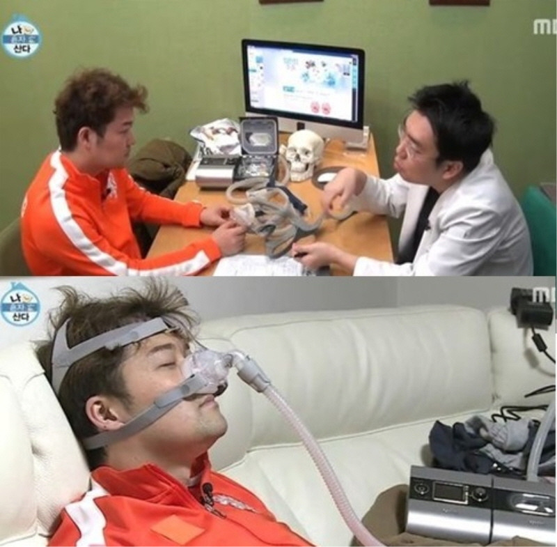 이 녀석은 정말 복잡한 기계였습니다. 일단 사진에서 보셨듯 코에다 갖다 대는 모양도 마음에 들지 않았죠. 원리는 입으로 숨 쉬지 않고 코로 숨을 쉴 수 있도록 하는 방식입니다. 코로 바람을 지속적으로 집어넣는데 만약에 입을 벌리는 순간 그 공기가 코를 통해 입으로 돌아서 나오기에 입으로 숨을 쉴 수가 없는 구조입니다.