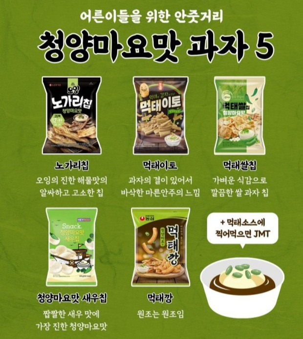 하지만 불편한 지점은 제 입맛에 먹태깡이 맞지 않았다는 점이 아니었습니다. 작년에 출시된 이후로 먹태와 청양마요에 대한 유행은 들불처럼 번져서 정말 다양한 아류작들이 나오기 시작했습니다. 같은 회사에서도 비슷한 형태의 제품들이 출시되었으며 경쟁업체에서도 앞다투어 비슷한 과자들을 만들어 팔기 시작했죠.