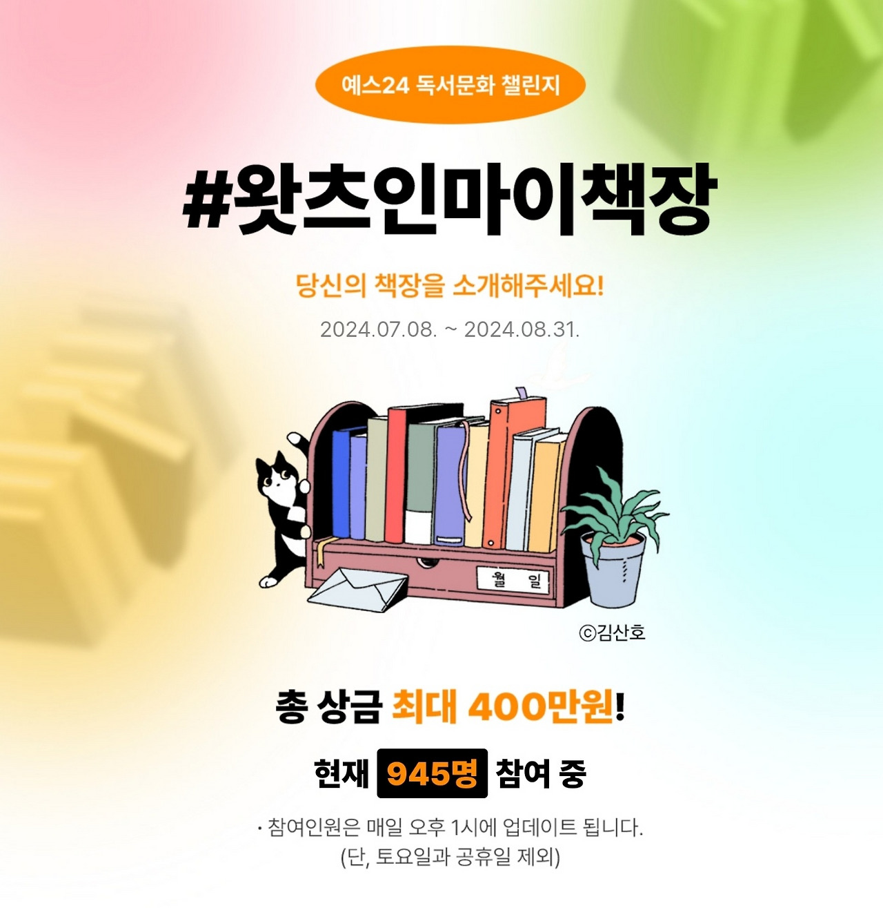 만약에 책장을 잘 꾸며놓으신 분들이 계시다면 8월 31일까지 행사가 진행되니 한 번 재미 삼아 도전해 보셔요. 다른 사람이 올린 사진들을 구경하는 재미도 있습니다. 저도 메모만 해놓고 계속 차일피일 미루다가 어제 사진을 올리고 이렇게 글도 써봅니다.