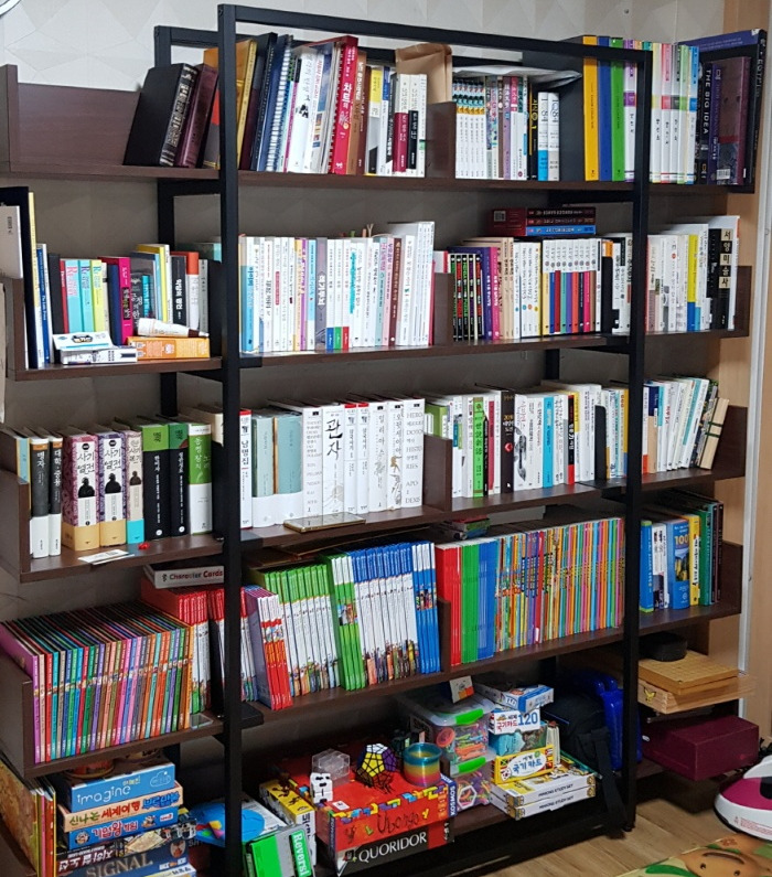 마음에 드는 대형 책장이 7년 전에 생긴 뒤로부터 새로 생긴 습관이자 취미라고 할 수 있습니다. 처음에 이 거대한 녀석이 집에 들어왔을 때는 이것저것 닥치는 대로 꽂아놓기 급급했습니다. 워낙 사이즈가 컸던 데다 아이들의 책도 많았으니까요. 제 책과 서류철, 아이들이 보는 책, 보드게임들까지 끼워두었음에도 빈자리가 제법 많았습니다.