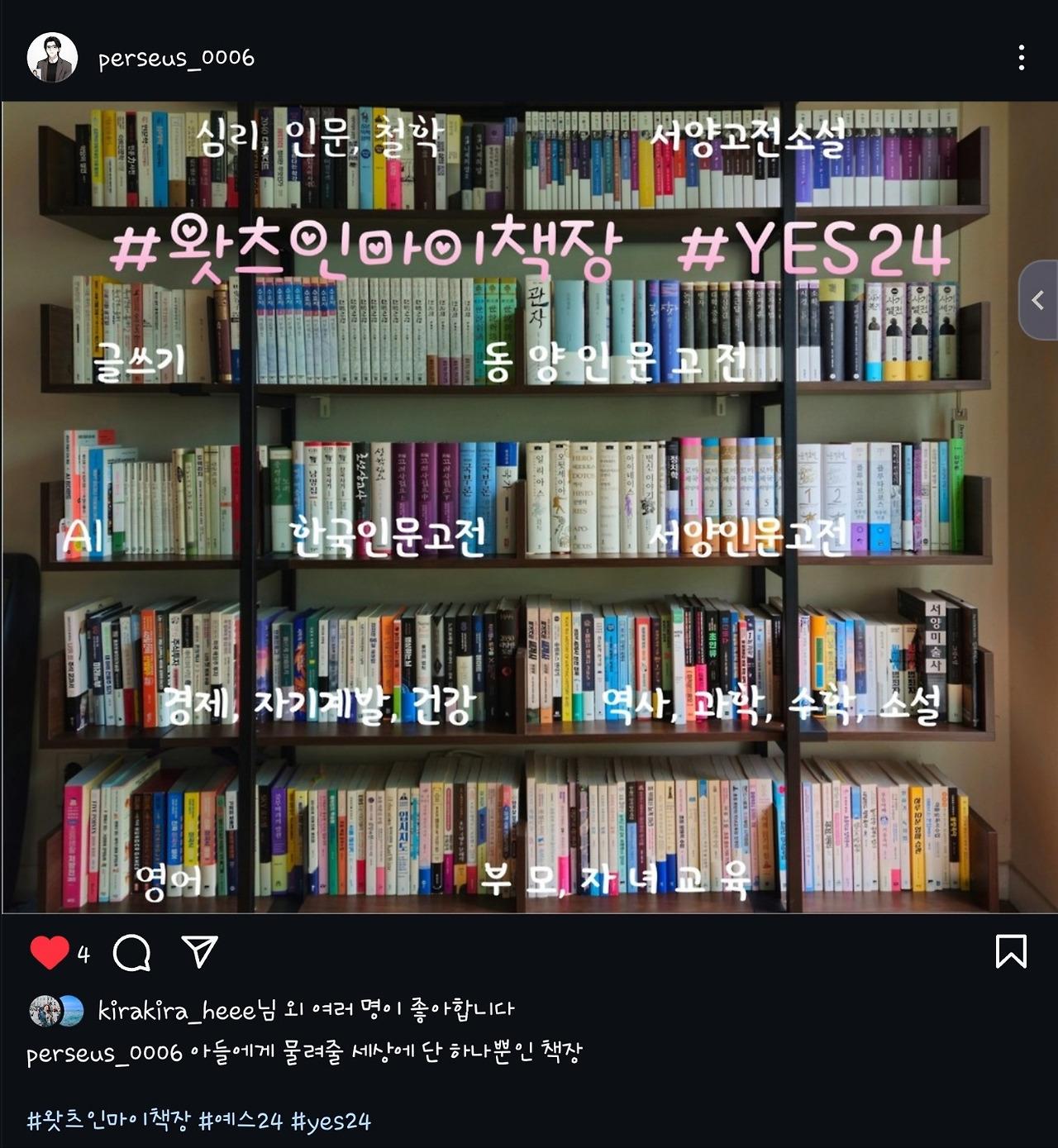 이런 상황에서 얼마 전 예스 24에서 재미있는 이벤트를 진행한다는 사실을 알게 되었습니다. 자신의 책장 사진을 올리는 이벤트였는데요.