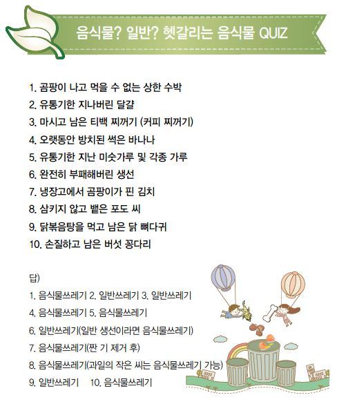 문제는 생각보다 일반 쓰레기와 음식물 쓰레기를 나누는 기준이 어렵다는 점입니다. 저 역시 이 분야에 대해서 어느 정도는 안다고 생각했는데 온라인상에 나오는 퀴즈들을 풀어보니 그렇지도 않았습니다.