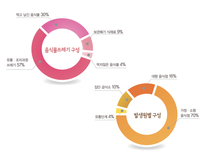 우리나라에서 만들어지는 음식물 쓰레기(이하 음쓰)는 보통 아래와 같은 표로 구성된다고 합니다. 시작부터 먹지도 못하고 버리는 비율이 절반이 넘습니다.