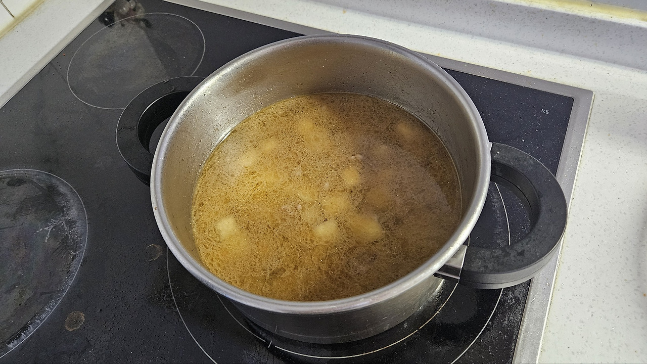 육수에 들기름과 함께 볶은 고기와 무, 파를 넣고 본격적으로 소고기뭇국을 끓이면서 건강이에게 레시피를 보면서 무생채 양념을 꺼내라고 합니다. 몇 번 시켰더니 이제는 뭐가 어디 있는지 조금 아는 눈치입니다. 생각보다 효율이 나쁘지 않았습니다.