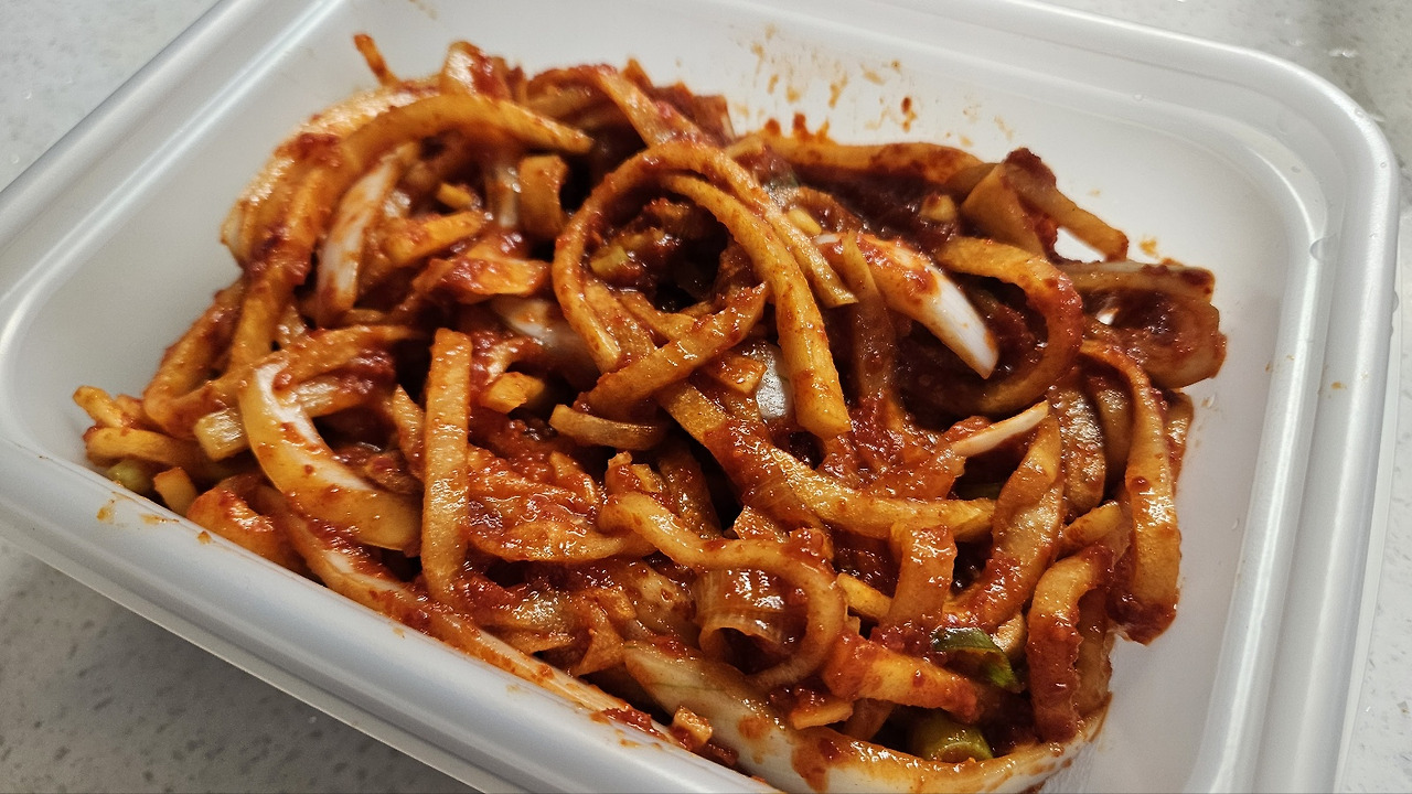 마지막 반찬인 진미채무침은 찌는 과정이 좀 부실했는지 약간 딱딱한 부분이 있어서 아쉬움을 남겼습니다. 조만간 심폐소생술로 다시 한번 되살려봐야겠어요.